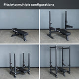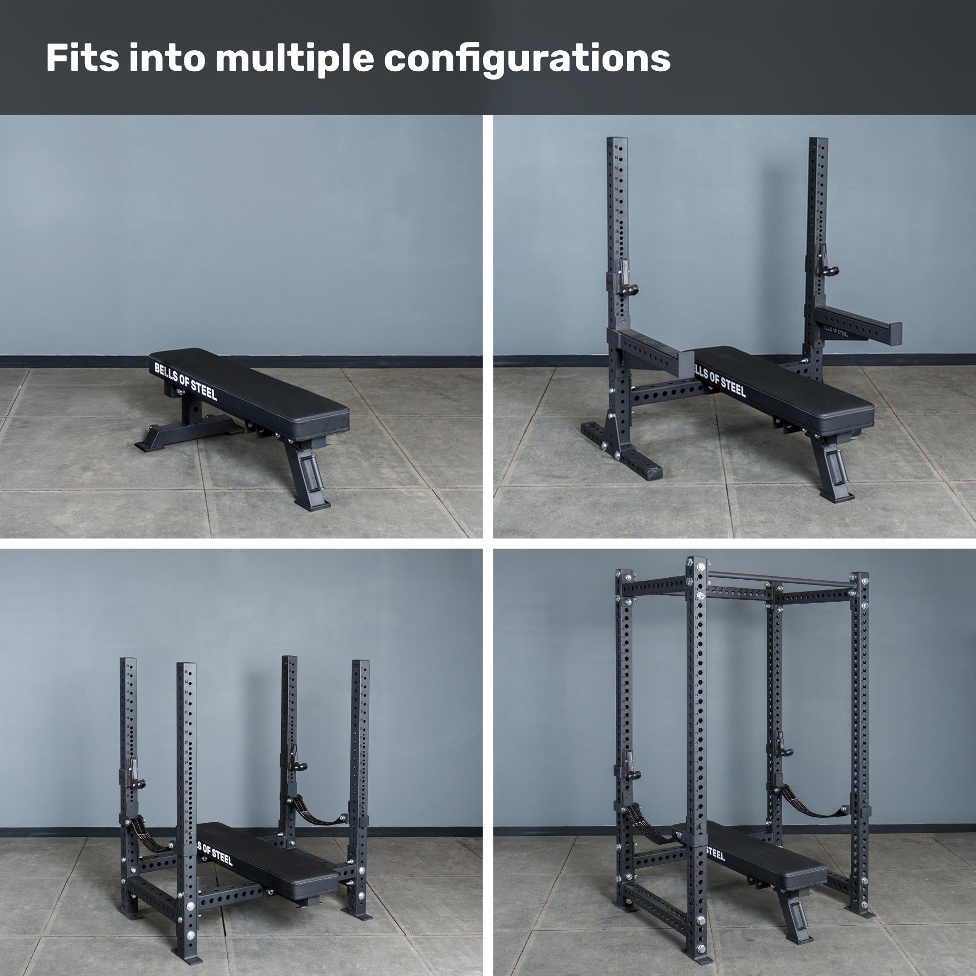 Standalone flat, makeshift incline, power rack drop-in with converter crossmember. Choose the setup that works for you.