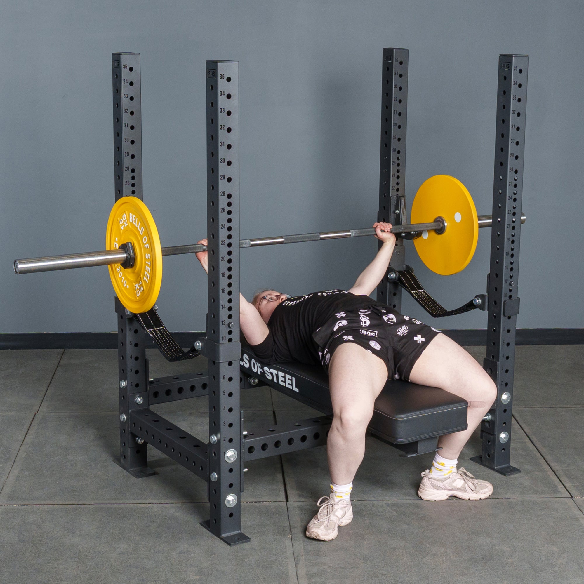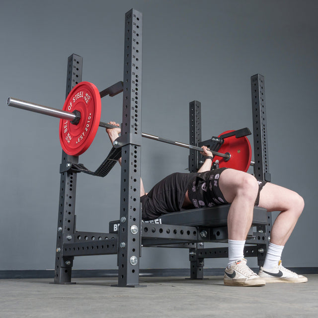 Get a locked-in, centered setup with specialty crossmembers that keep your bench steady, rep after PR-breaking rep.