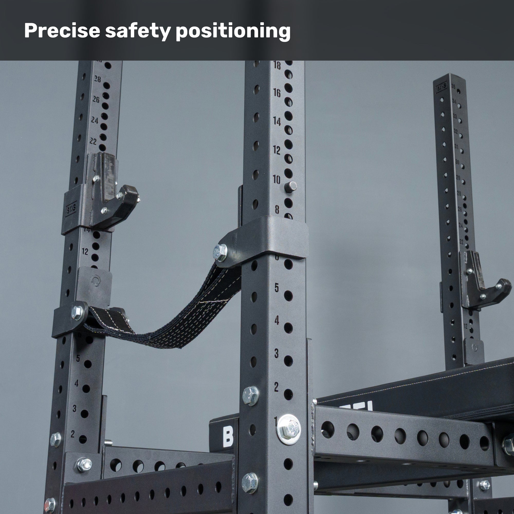 Dial in your J-cups and safeties to the exact millimeter. Tight spacing means precision setups for competition-style training.