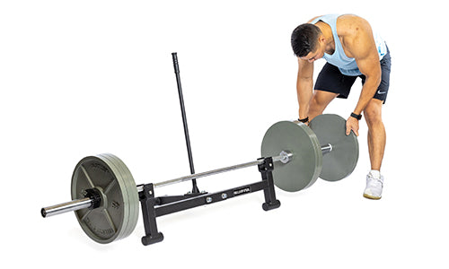 A deadlift jack holds your bar off the ground, giving you enough space between the plates and your floor so weight changes are a breeze. Just line up, scoop, and load-that's the power of leverage, baby!
