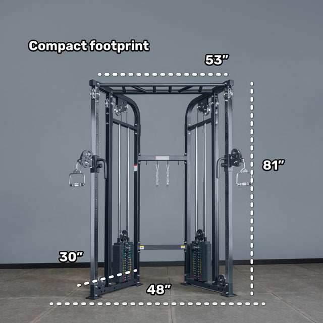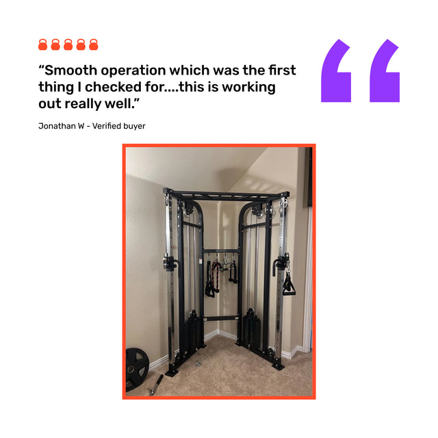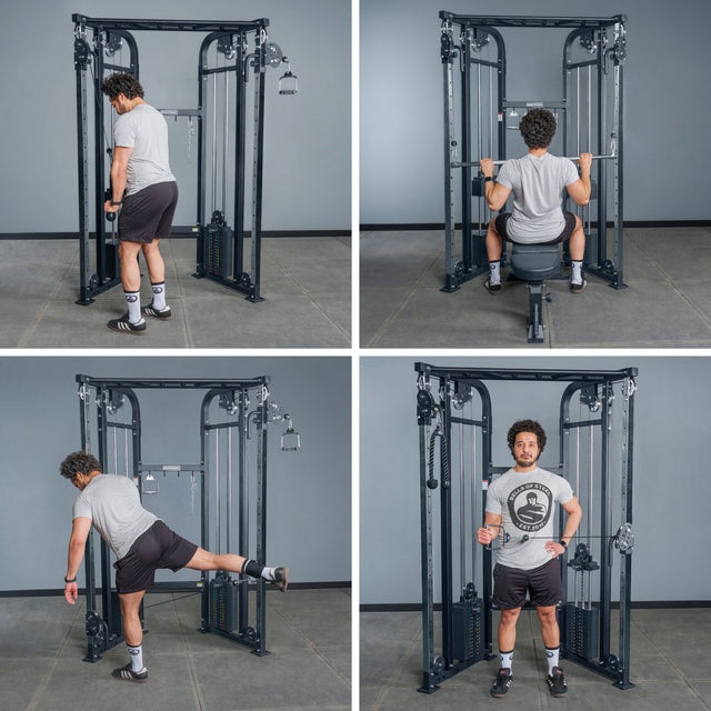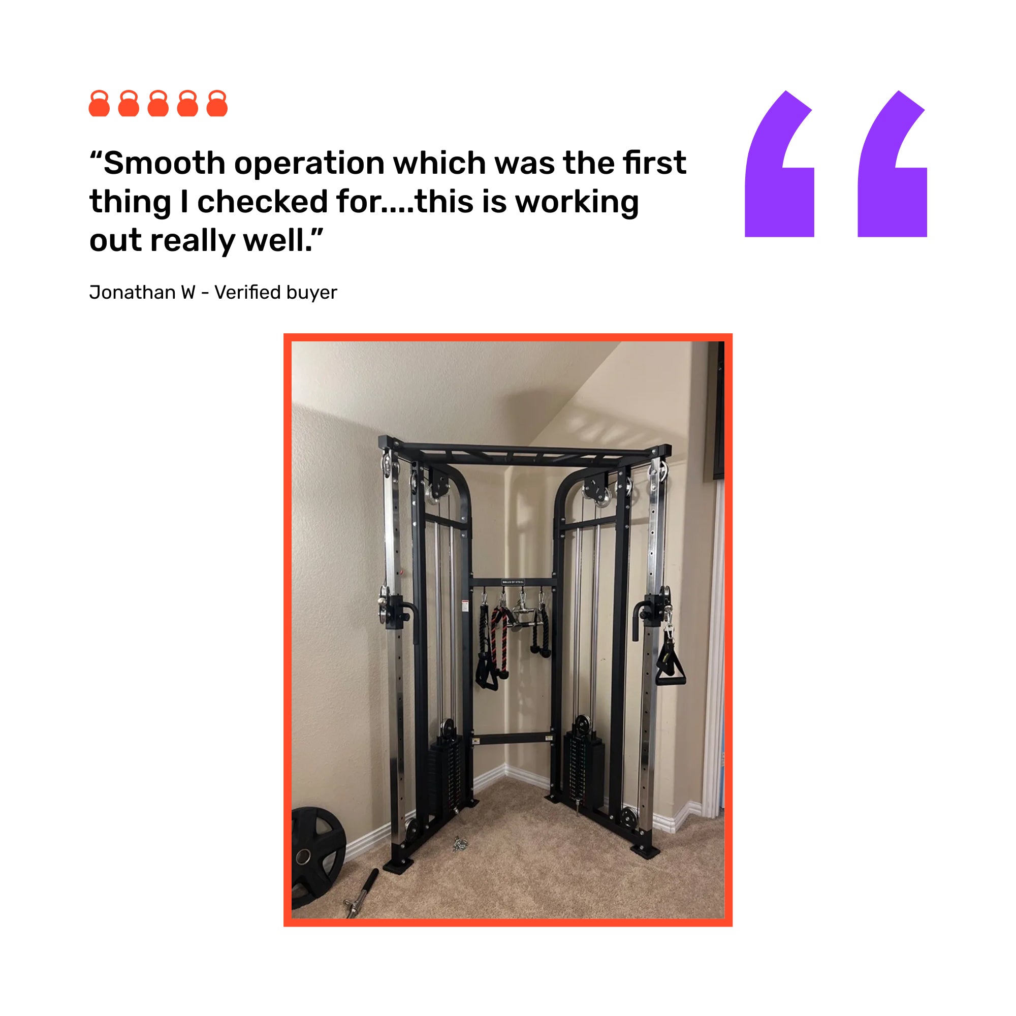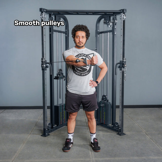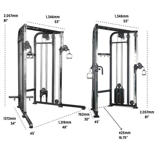 The functional trainer unlocks sports crosstraining, functional movements, rehab, and bodybuilding! Featuring dual cables with 16 different heights and two included handles, plus many more cable attachments to choose from, you can fully customize your training experience.
