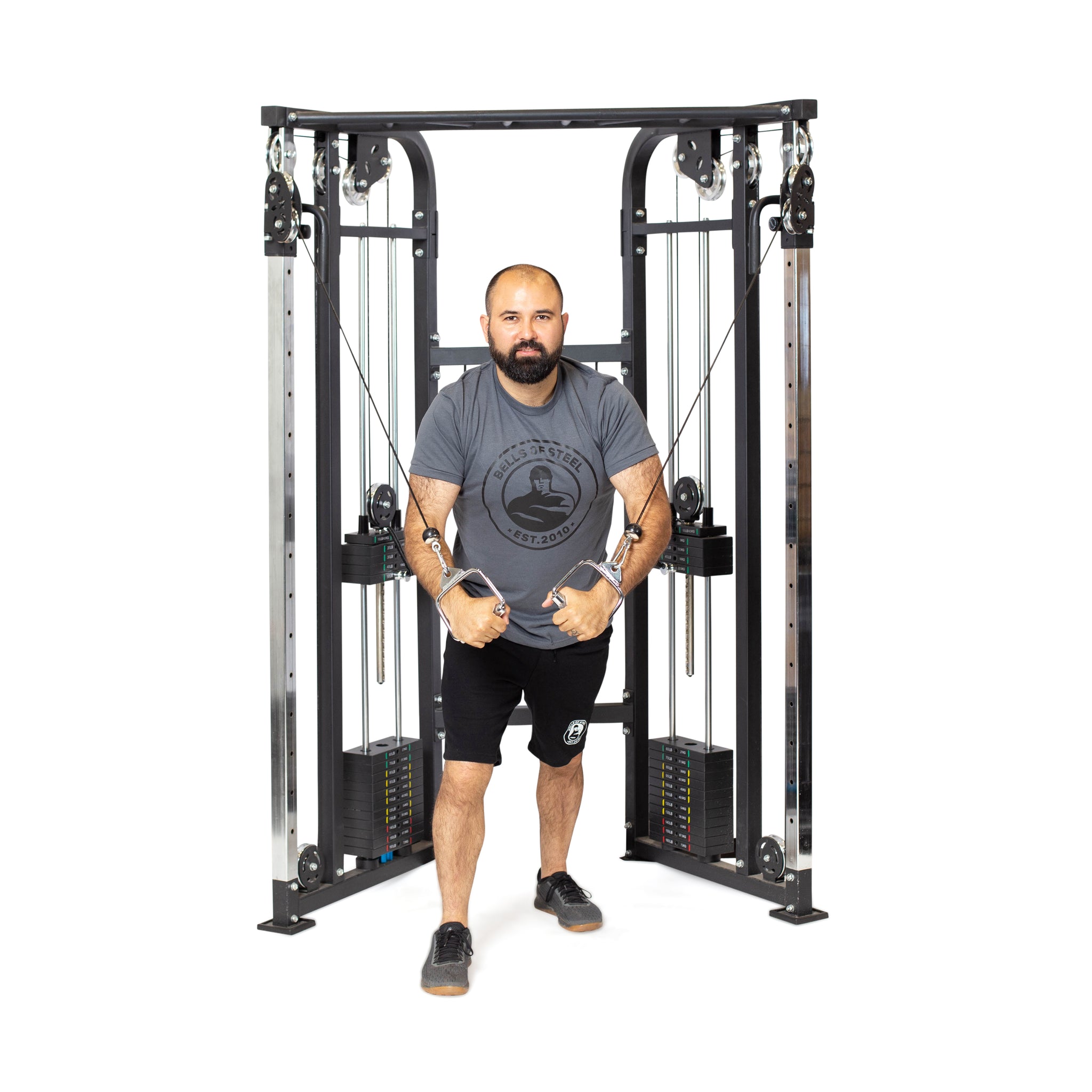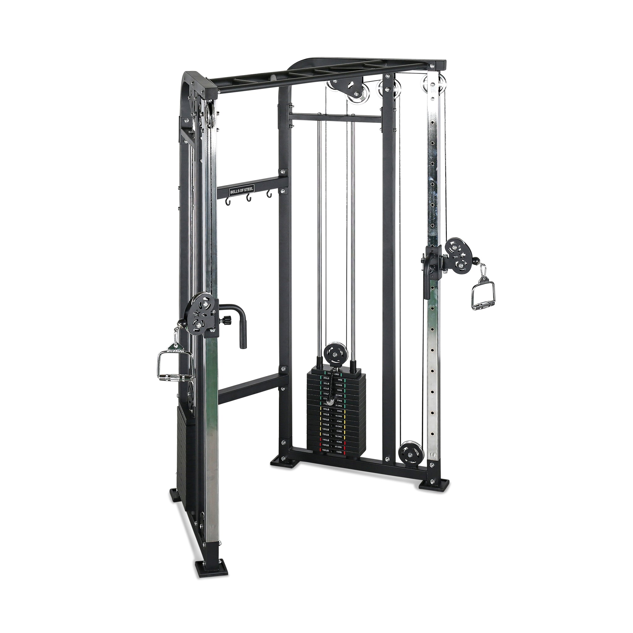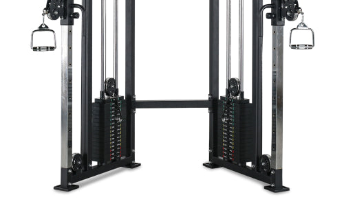 The functional trainer unlocks sports crosstraining, functional movements, rehab, and bodybuilding! Featuring dual cables with 16 different heights and two included handles, plus many more cable attachments to choose from, you can fully customize your training experience.