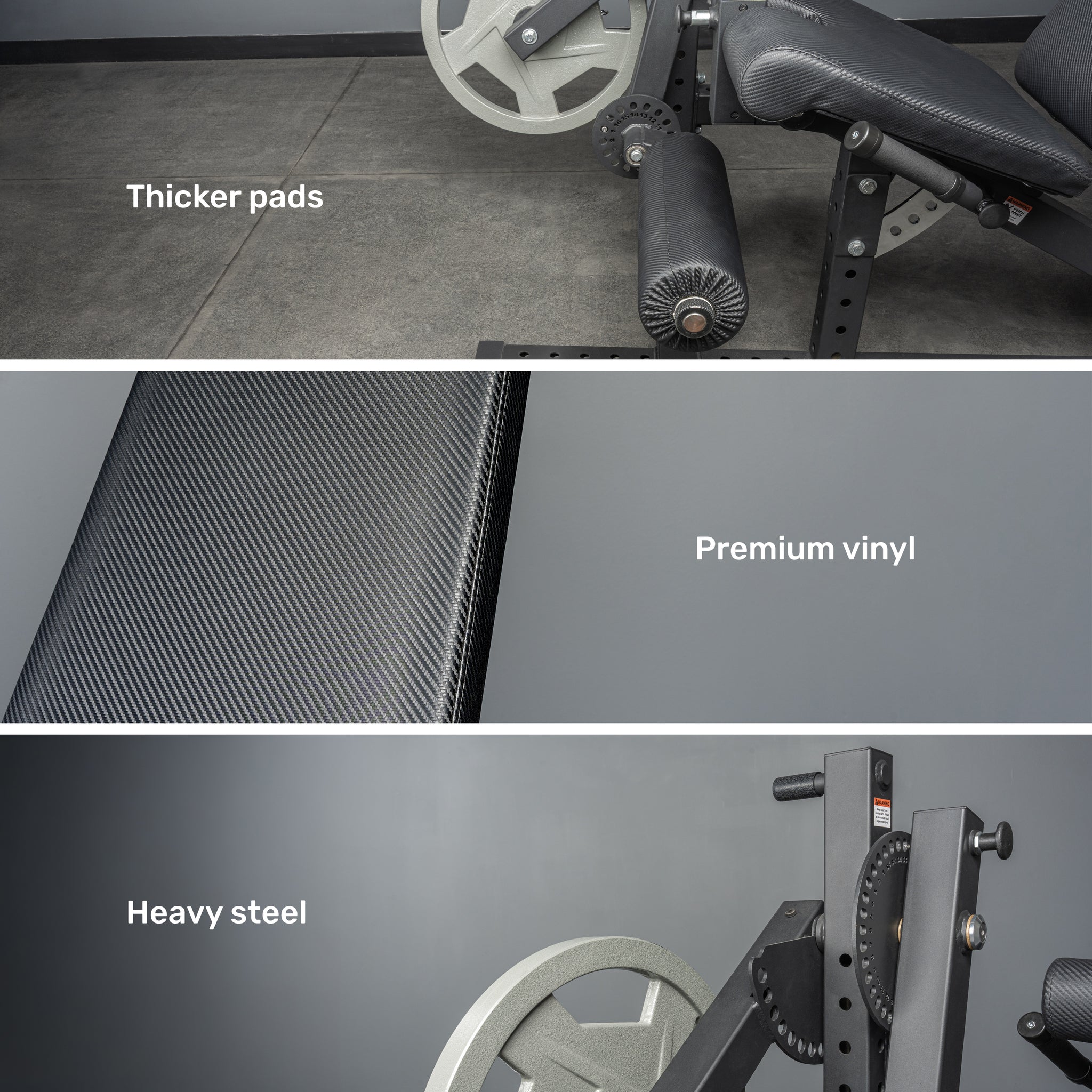 - Premium Comfort → Double-thick leg rollers and high-grade vinyl padding provide commercial-level comfort and support.