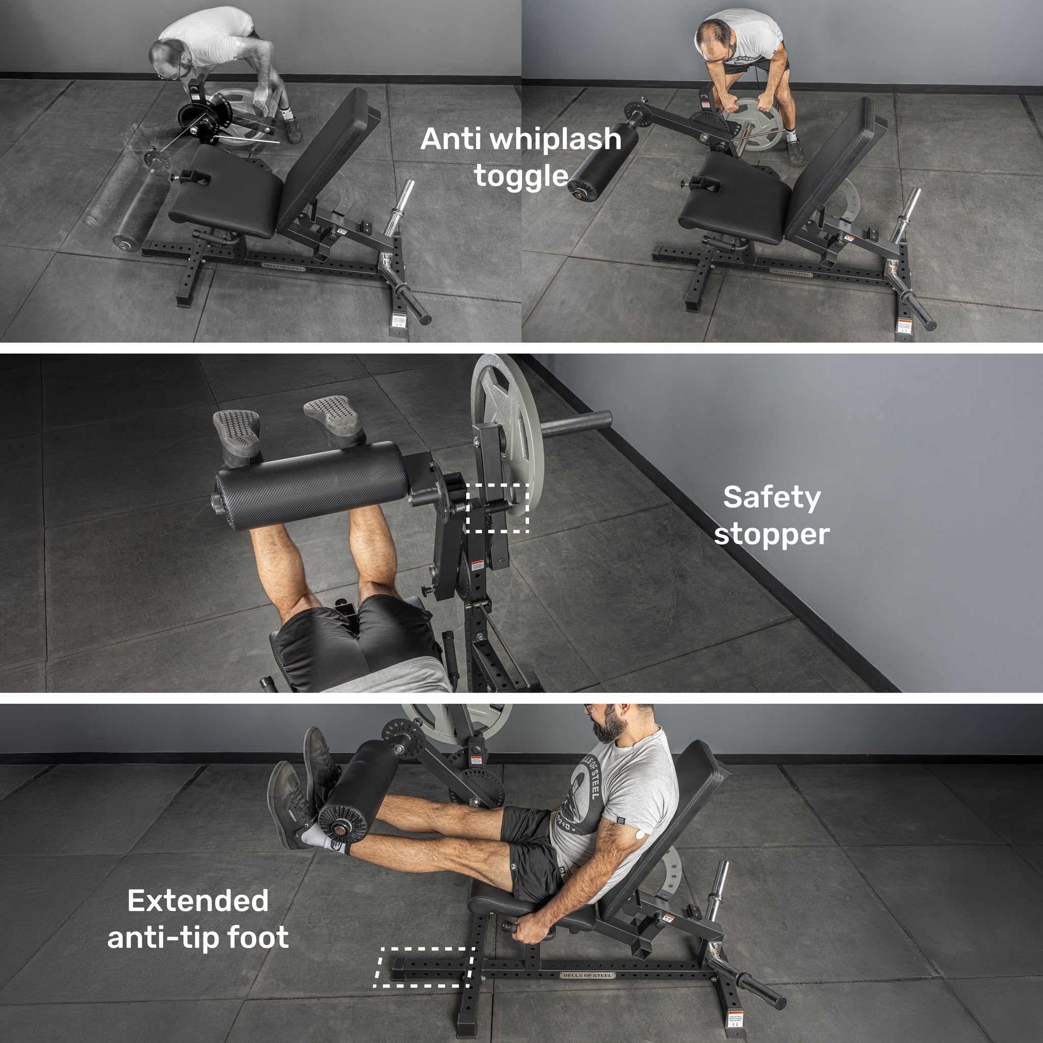 - Multi-Purpose Design → Switch seamlessly between leg extensions and prone or seated hamstring curls on one compact, plate-loaded machine.