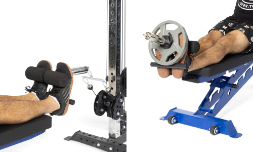 Bodyweight tib raises work, but loading them is more awkward than a middle school slow dance. The tibialis trainer bar fits Olympic weight plates for structured progressive overload & the included magnetic collar locks ‘em in. Use the eyelet for some cable machine or resistance band loading magic.
