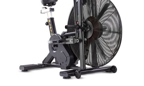 The Blitz Air Bike is the definitive choice for your home gym. Belt-driven with an oversized fan and comes standard with a wind guard, bottle and phone holder, and a seat optimized for comfort!