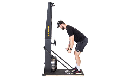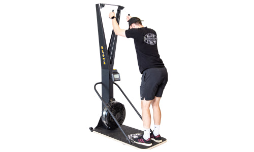 The Blitz Ski Trainer uses a fan-based flywheel. This means that the harder your pulls, the harder the resistance-making for highly responsive and adaptable workouts.