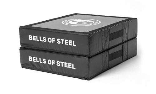 Hefty foam fillers and a durable outer shell withstand heavy drops. Stack them for rack pulls and jerk work with a secure velcro outer edge and hang them up out of the way when not in use.