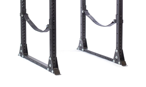 With the flat foot support system, you won't have to bolt your rack into your floor (or hire a contractor). The larger contact surface area makes the rack sturdier for racking/unracking your bar, during pull-ups, and when doing dips.