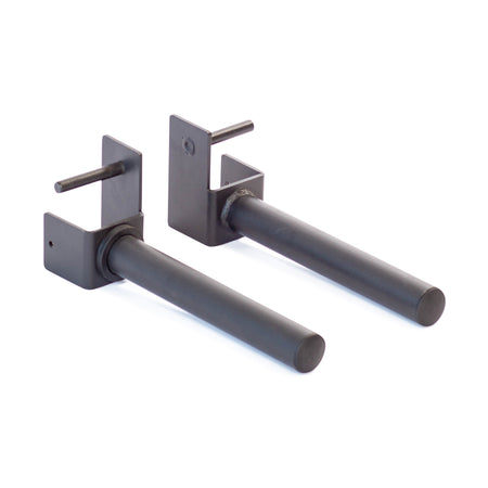 Hanging barbell holders are an economical & space-saving alternative to standalone bar storage like a 5 Barbell Holder. And when paired with a set of Plate Pegs, they can even replace an entire Bumper Plate Tree.