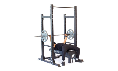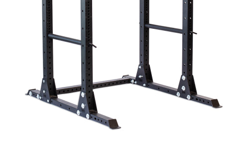 With the flat foot support system, you won't have to bolt your rack into your floor (or hire a contractor). The larger contact surface area makes the rack sturdier for racking/unracking your bar, during pull-ups, and when doing dips.