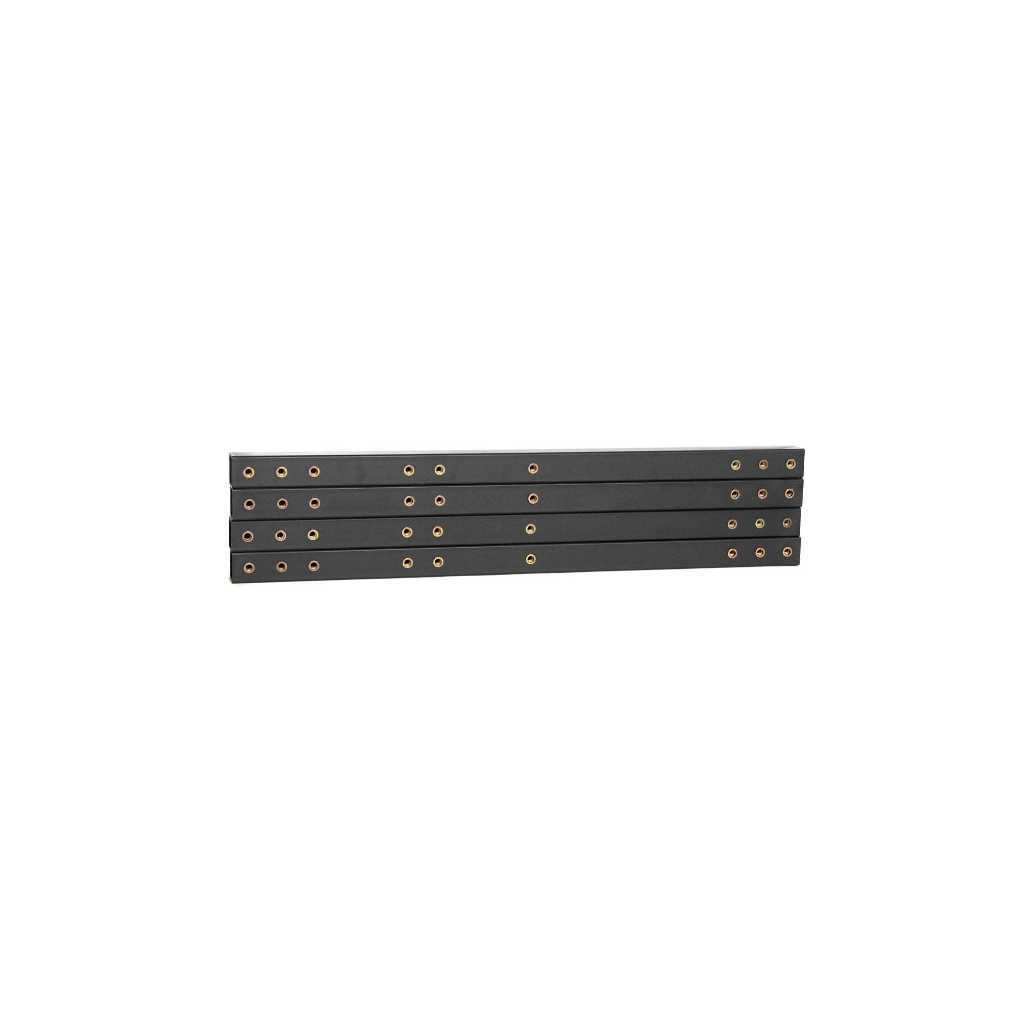 The Bells of Steel Deadlift Platform 95 (38) cm tube (4 pieces) features four black metal bars with gold-rimmed holes, stacked horizontally—perfect for lifting platforms or sturdy structural assemblies.