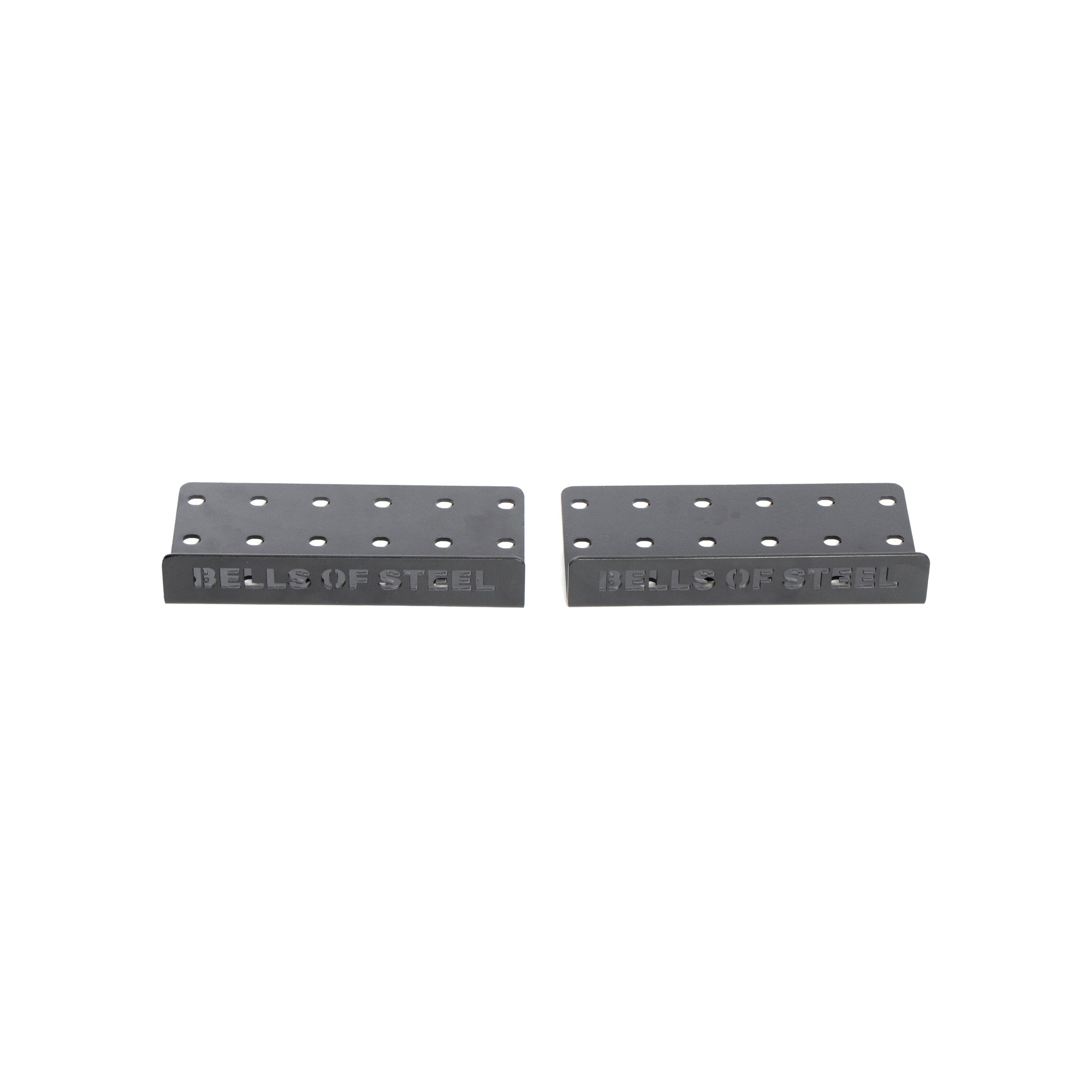 The Bells of Steel Deadlift Platform Three Layer Centre Connection + hardware includes two black metal brackets with multiple holes and engraved branding, designed for center connection to ensure stable lifting.