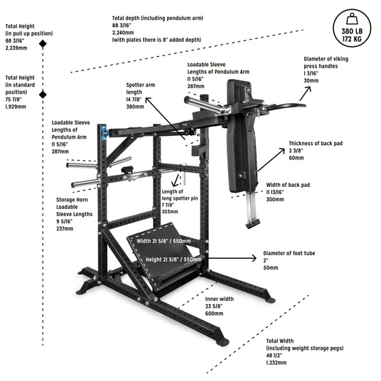 • Multifunctional Full-Body Work → Use it for pendulum squats, Viking presses, calf raises, dips, pull-ups, and even rows.
