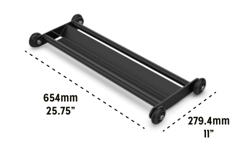 The Bells of Steel Glute Ham Slider is a black, rectangular device with four corner wheels, designed for efficient under-desk storage and easy mobility of devices like computer servers, set against a white background.