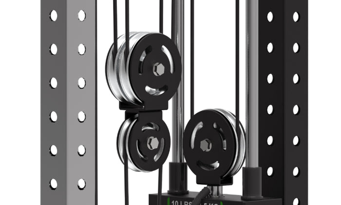 The Bells of Steel Cable Tower delivers full cable-machine functionality in a compact footprint under 2.5' × 2.5'—making it one of the most space-efficient cable systems available. With 30+ height settings, dual pull ratios (2:1 and 1:1), and your choice of plate-loaded or 210 lb selectorized stack, it's designed to give you commercial-level versatility without the size or cost of traditional cable machines.