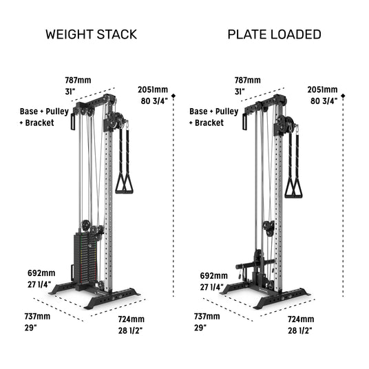 The 80.75” height fits great in basements or mounted on ≥ 84” racks. Meanwhile, the 90” height is ideal for taller users, increasing the range of motion for exercises like tricep pushdowns.