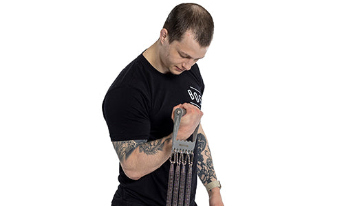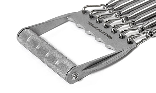 With 7 adjustable springs on carabiners, you can remove and adjust the tension to suit your experience and goals. Beginners can remove springs for less tension and add them back and play this bad boy like a muscle-building accordion (Lederhosen optional).