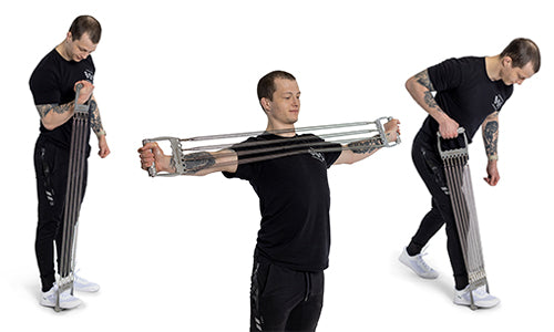 The chest expander offers consistent tension throughout the movement regardless of how many springs are attached, making it optimal over bands for bodybuilding.
