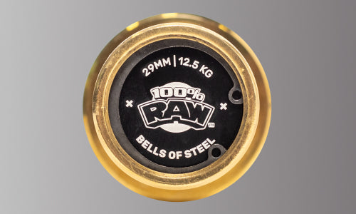 Its 58” length and 12.5kg weight meet competition specs with a precise weight tolerance. And let’s not ignore its flair – gold ribbed sleeves, a striking red Cerakote shaft, and custom RAW logo end caps make this bar stand out as much for its looks as its performance.