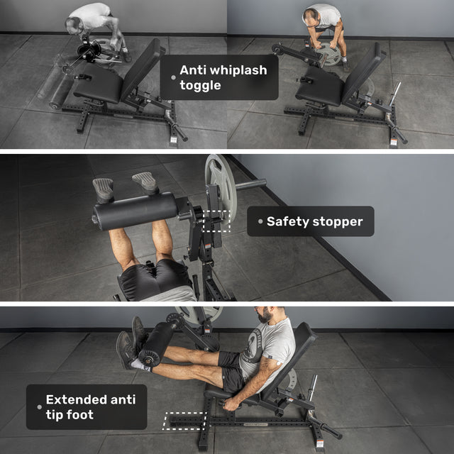 - Multi-Purpose Design → Switch seamlessly between leg extensions and prone or seated hamstring curls on one compact, plate-loaded machine.