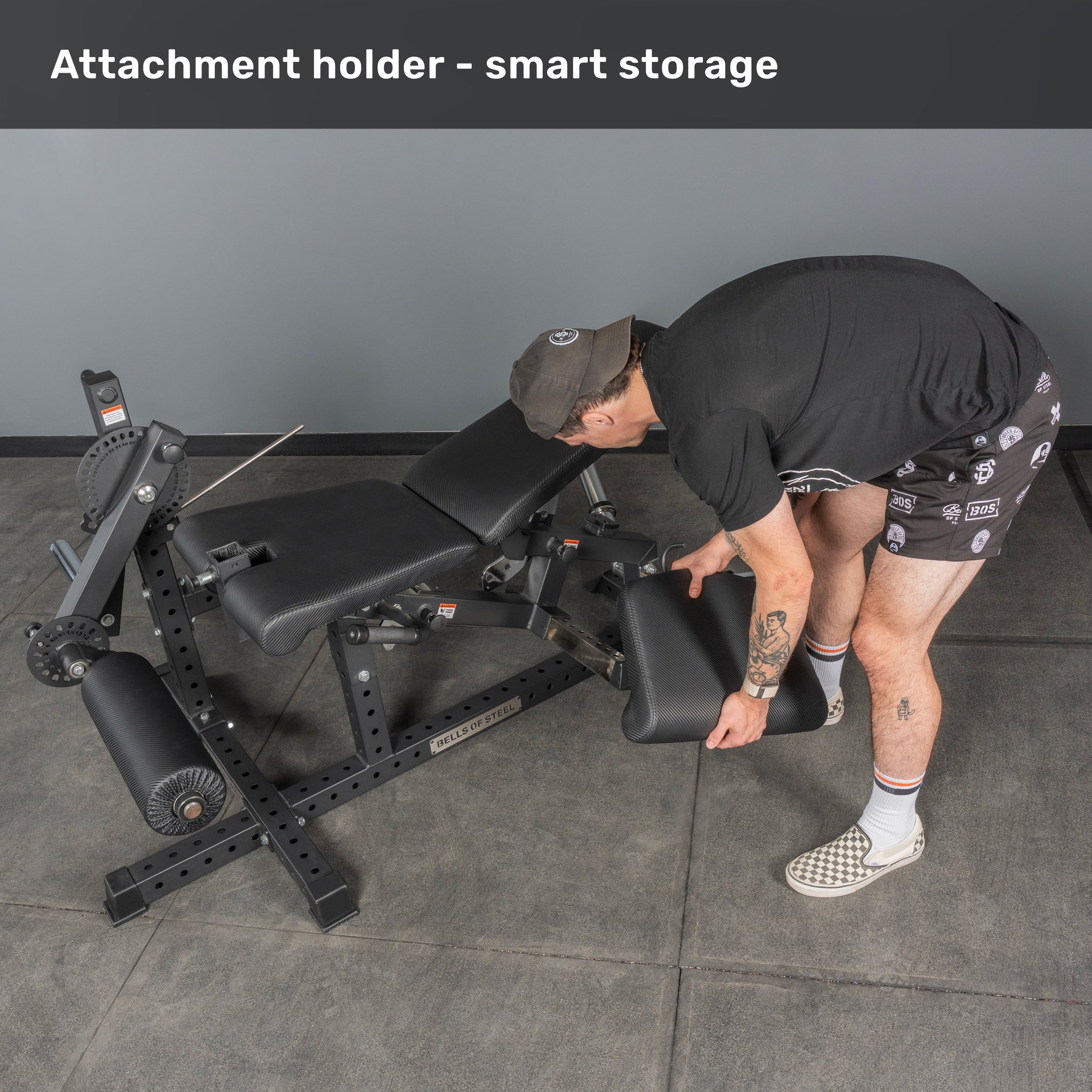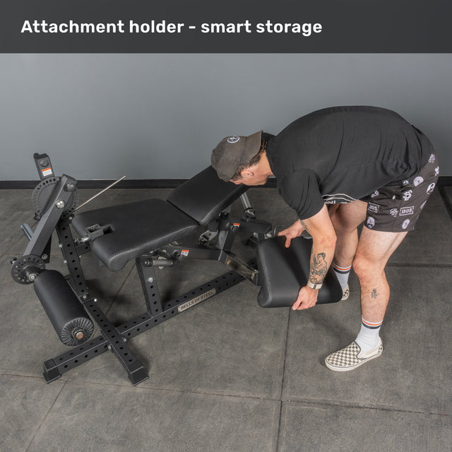 - Preacher Curl Attachment (Optional) → Expands your training beyond leg day with targeted biceps work. Carabiner-compatible so you can use your favourite cable handle (not included) for a personalized setup.