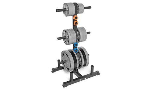 The tree's tubing holes allow you to adjust the height of the plate pegs to match your plate collection, whether you're rocking bumpers or a complete set of iron plates.