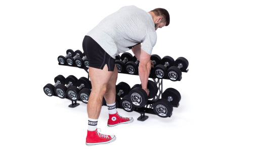 IMPORTANT: Avoid dropping to extend lifespan. Show them off in style with easy access using the Commercial Dumbbell Rack.